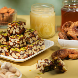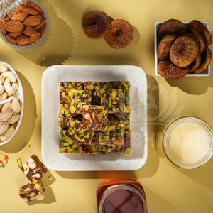 Crafted with Anjeer (figs) and pure honey, melted in Gir Cow Ghee, and generously blended with crunchy cashew nuts, almonds, and shredded pistachios, this sweet treat is perfect for any occasion — be it festivals, fasting, gifting, or daily indulgence.
