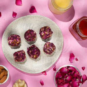 Rose Dryfruit Ladoo – Healthy Indian Sweet with Nuts, Ghee & Natural Rose Flavor